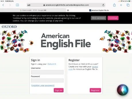 ②テキスト表紙裏についている案内の下にある黒いシールをはがして、アクセスコードに入力。